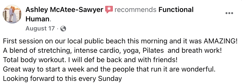 Weekly movement session on Nokomis Beach combining functional fitness, games, and yoga for active adults who want to move better and have fun doing it.