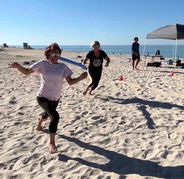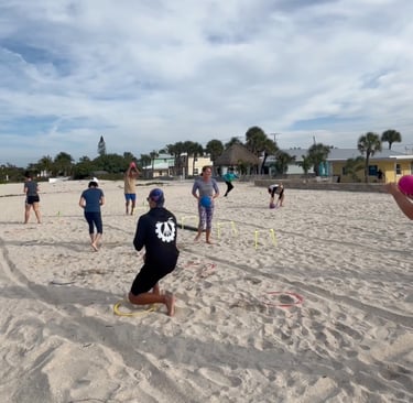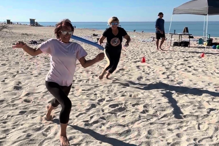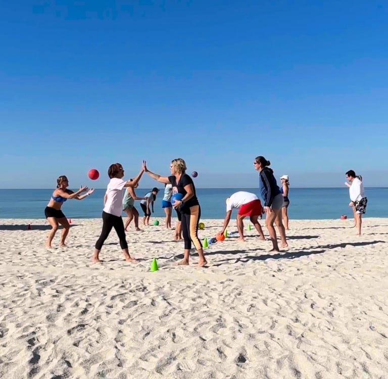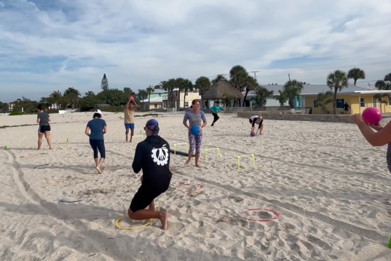 FX Beach: Grown-Ups is a Sunday morning beach program for adults 35 and up. Every session combines functional movement, play-based challenges, and breathwork in a small group setting on the sand at Nokomis Beach.