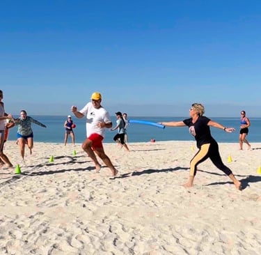 The sand creates natural resistance and instability that no gym floor can replicate. The outdoor setting changes how people move, how they breathe, and how they show up.