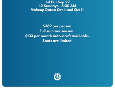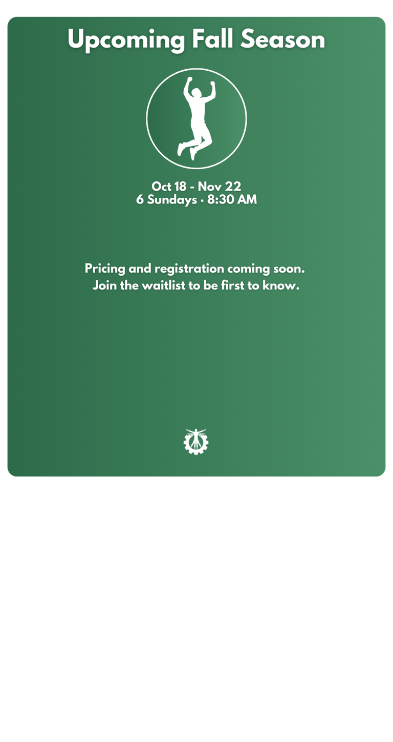 Weather cancellations are communicated by 6:30 AM via text and social media. Makeup dates are built into each season so you never miss out.