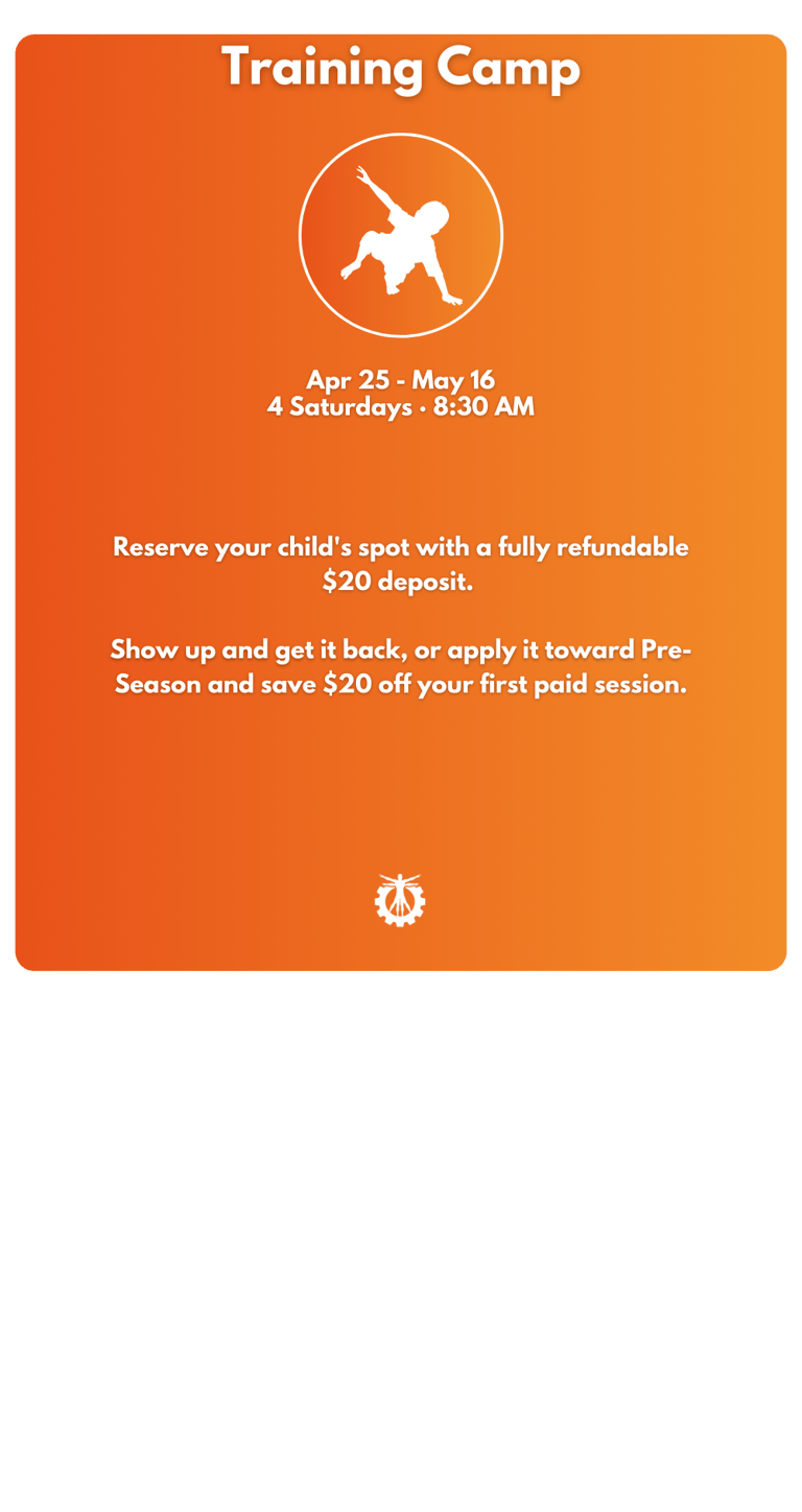 Deposit refunds are processed within 5 business days after the final Training Camp session on May 16.