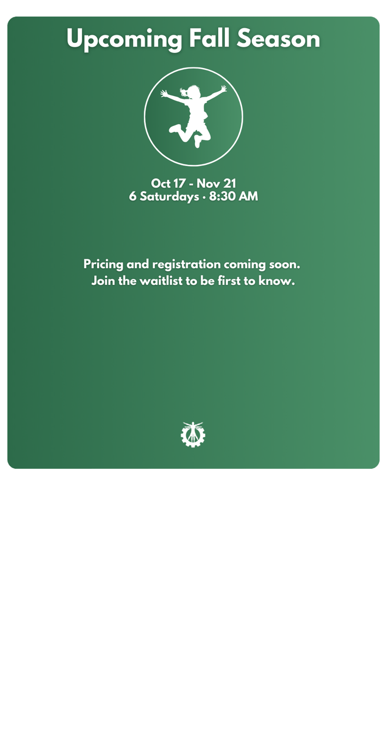 Makeup dates are built into each season so your child never misses out.